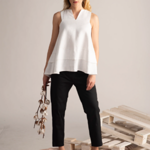 Elegantes Layered Sleeveless Linen V-Neck Top