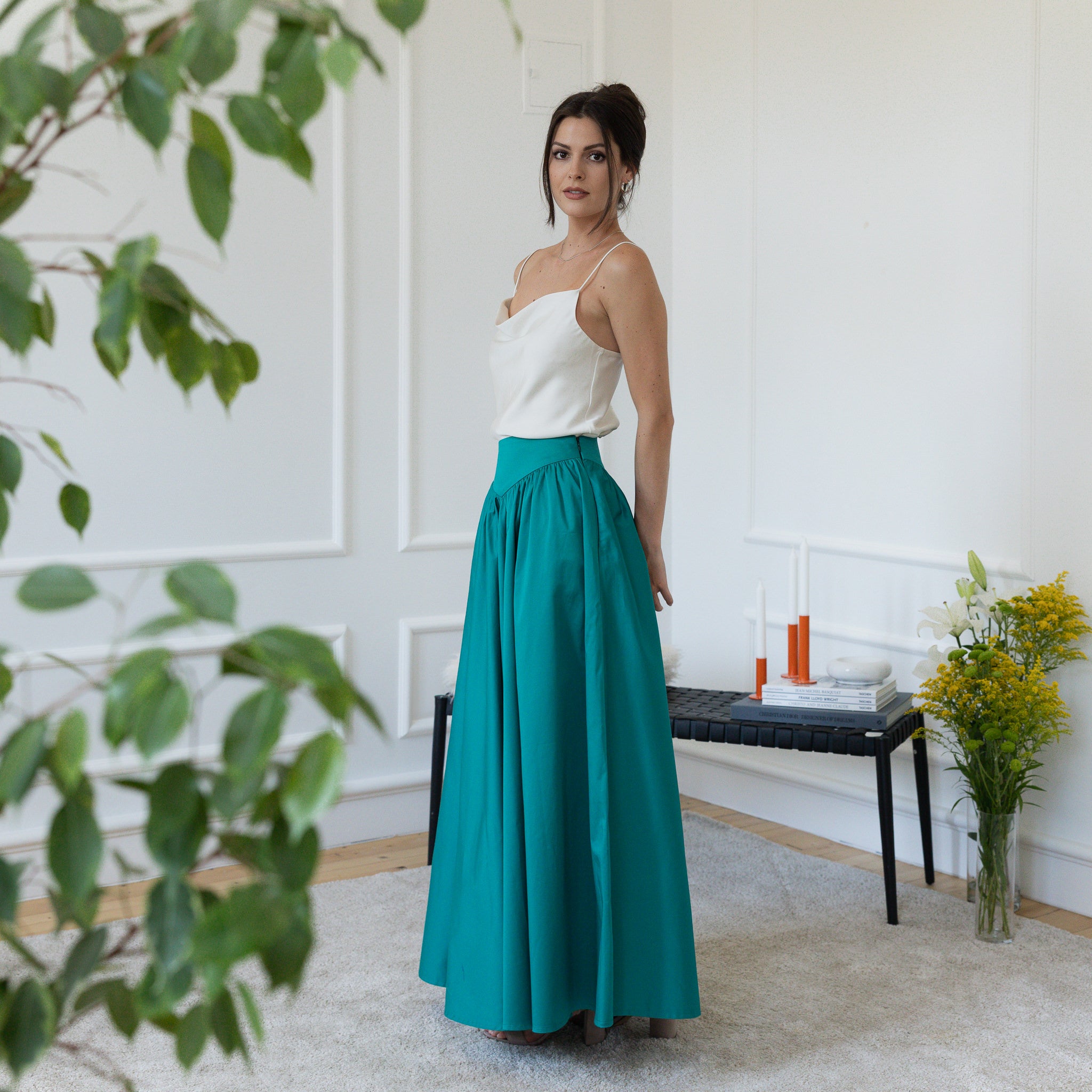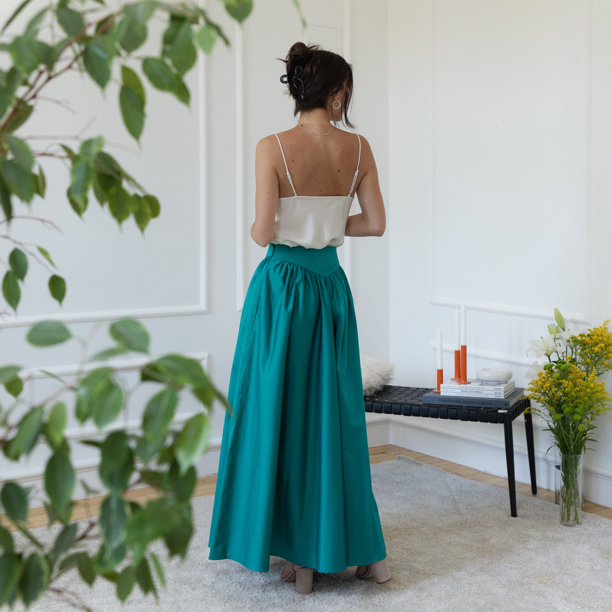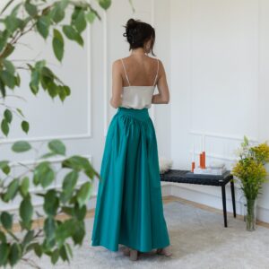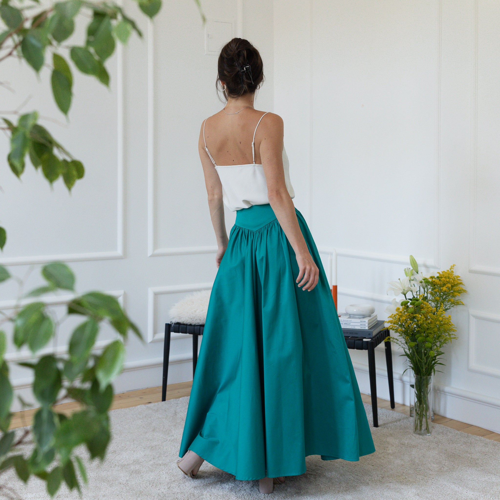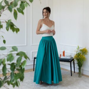 Elegantes Maxi Cotton Gathered Skirt with High Waist and Pockets