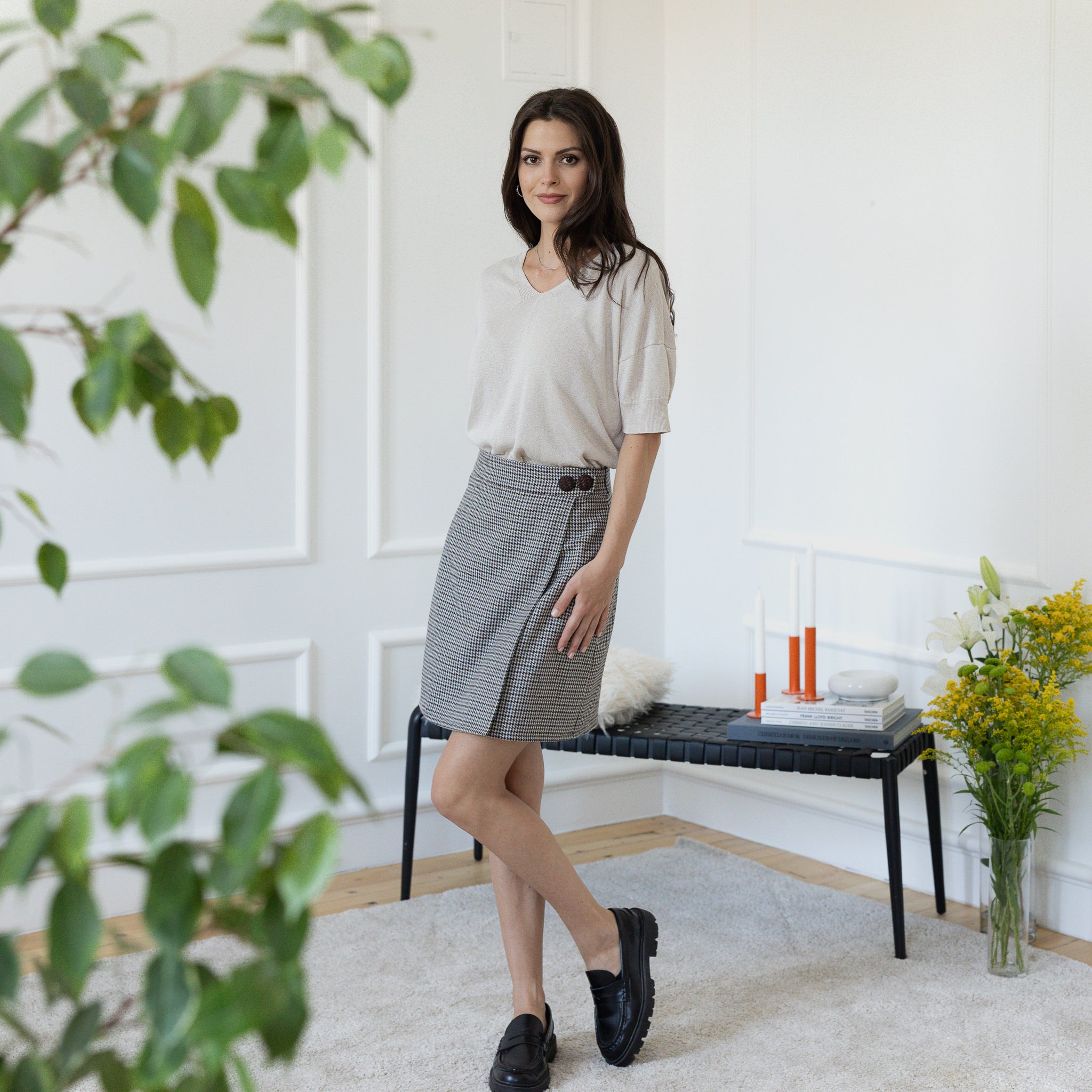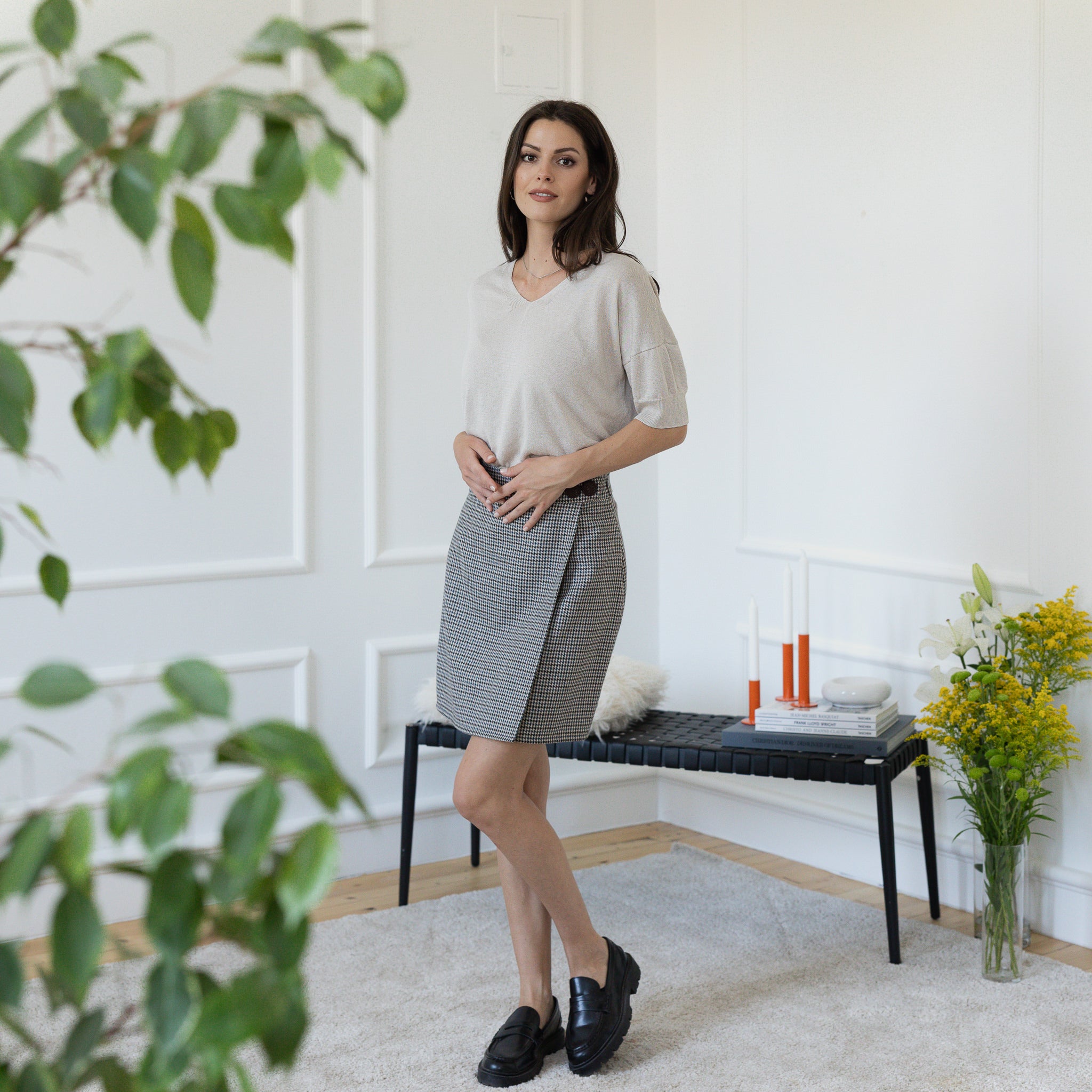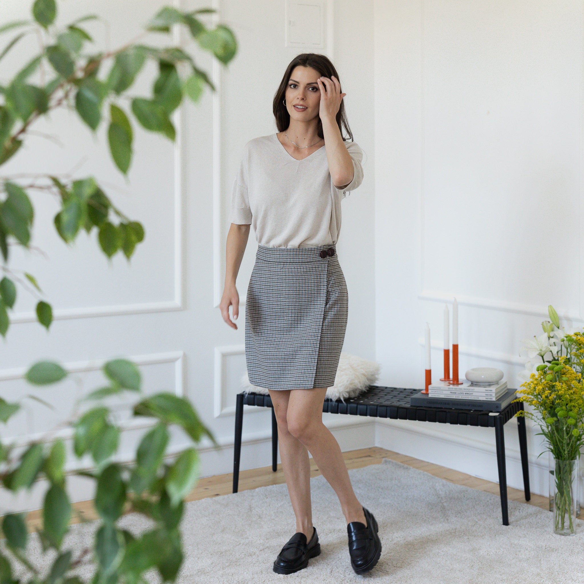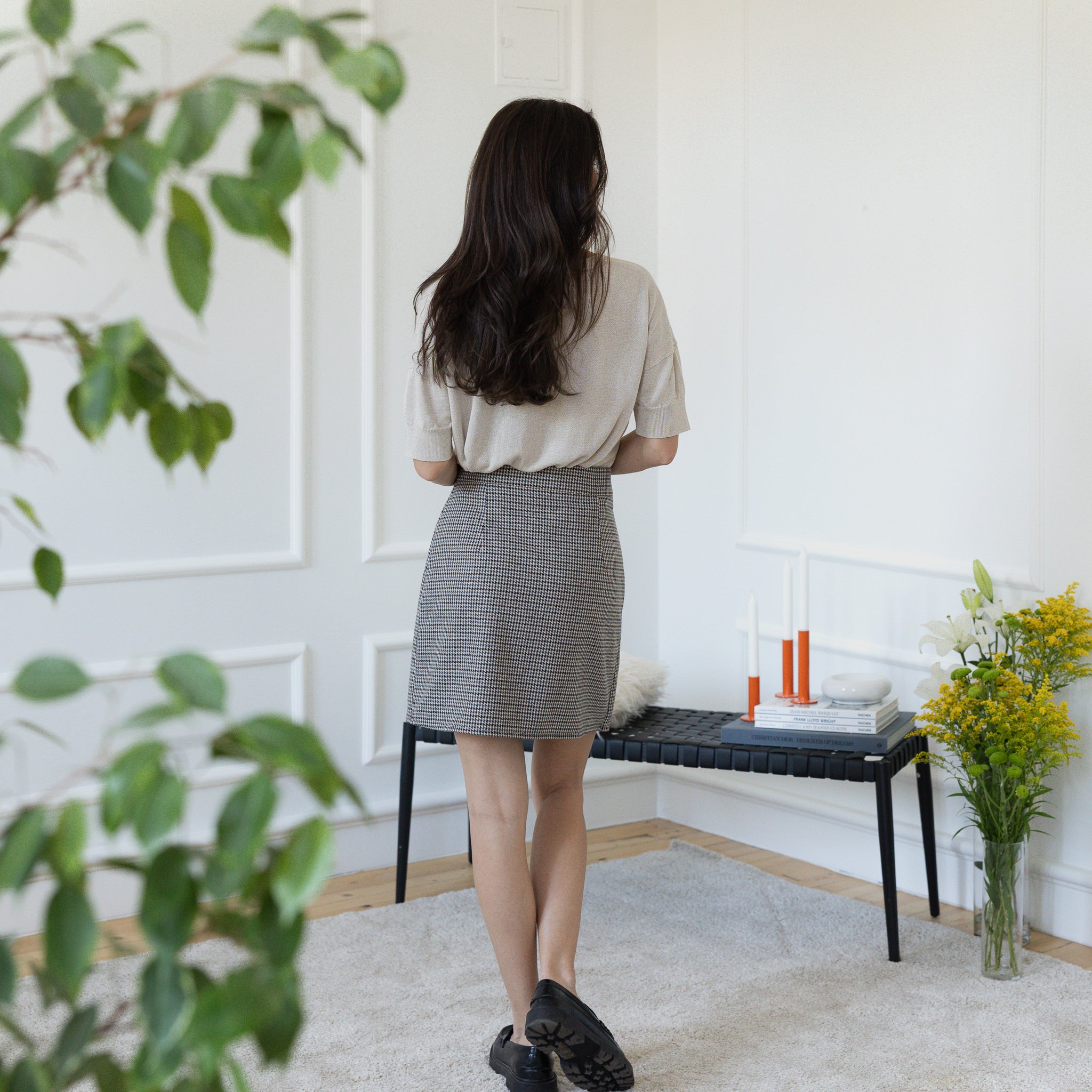 Elegantes Mini Pencil Houndstooth Wool Skirt with High Waist