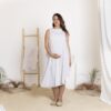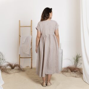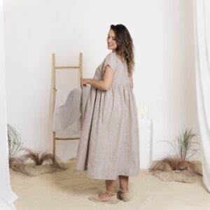 Elegantes Oversized Linen Maternity Dress with Short Sleeves and Pockets